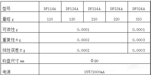 DF万分之一内校电子天平技术参数:
